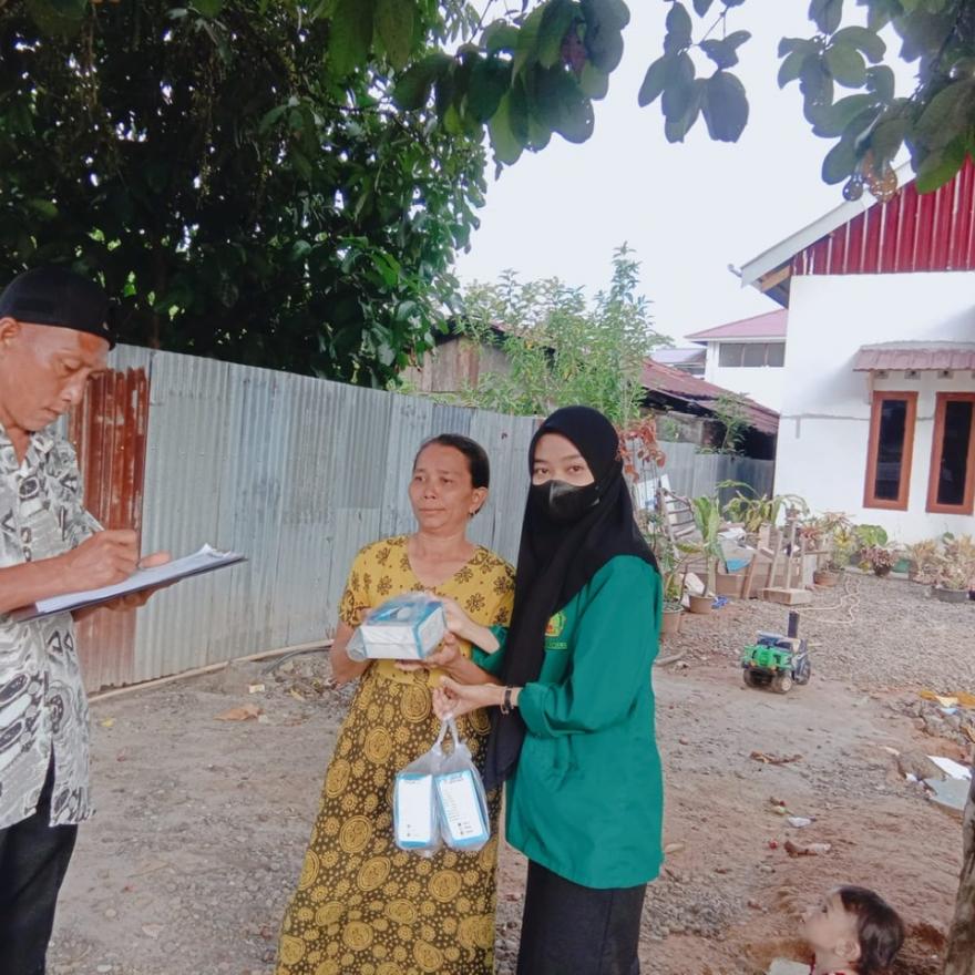 Pemerintahan Desa Taba Pasmah Kecamatan Talang Empat Kabupaten Bengkulu Tengah membagikan masker dan handsanitizer kepada ...